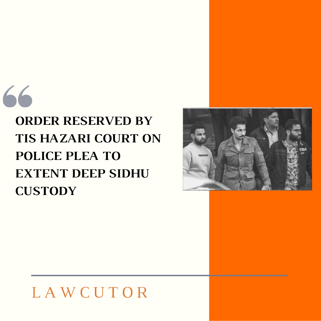 ILNS: The Chief Metropolitan judge of the Tis Hazari Courts on Monday reserved his order on the Delhi Police’s custody plea for Punjabi actor Deep Sidhu, in remission for his role within the violence and also the hoisting of a Sikh flag at Red Fort on Republic Day this year throughout the farmers’ tractor rally/parade.