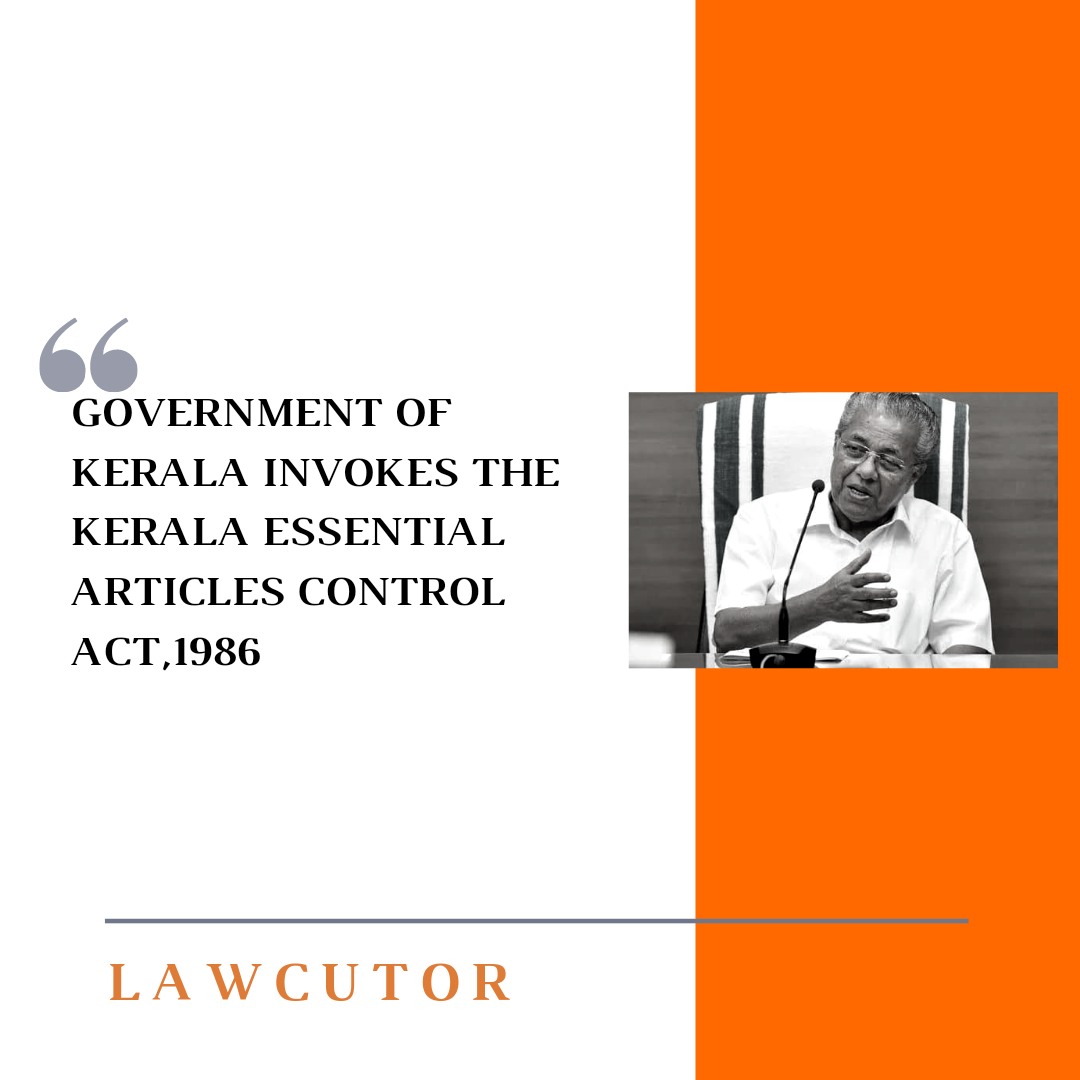The Chief Minister of Kerala, Pinarayi Vijayan, tweeted that the Kerala Essential Articles Control Act, 1986 is being invoked to control prices of the essential articles required for treating COVID19.