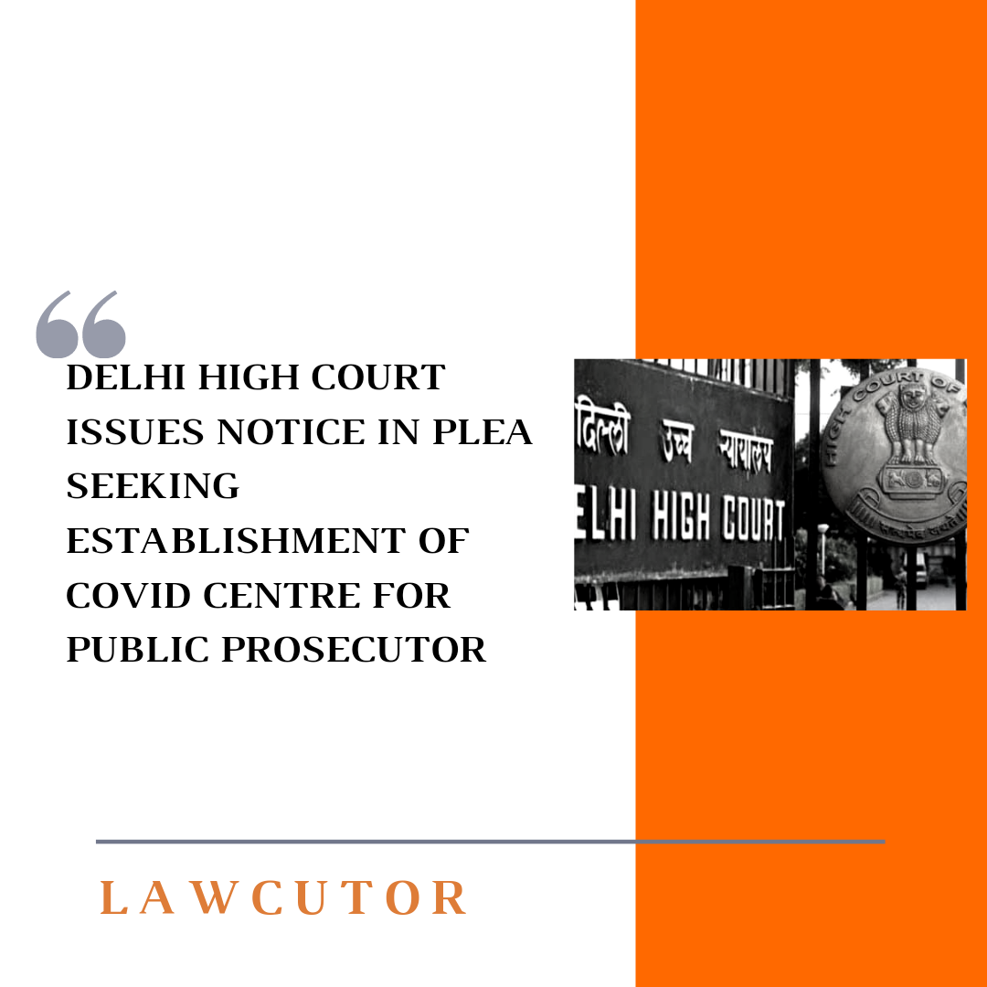 On Monday, Delhi High Court issued notice in a plea seeking establishment of covid care centre having atleast 100 beds with ICU and Ventilator facilities public prosecutors and staff of Delhi Prosecution Department and their family members.