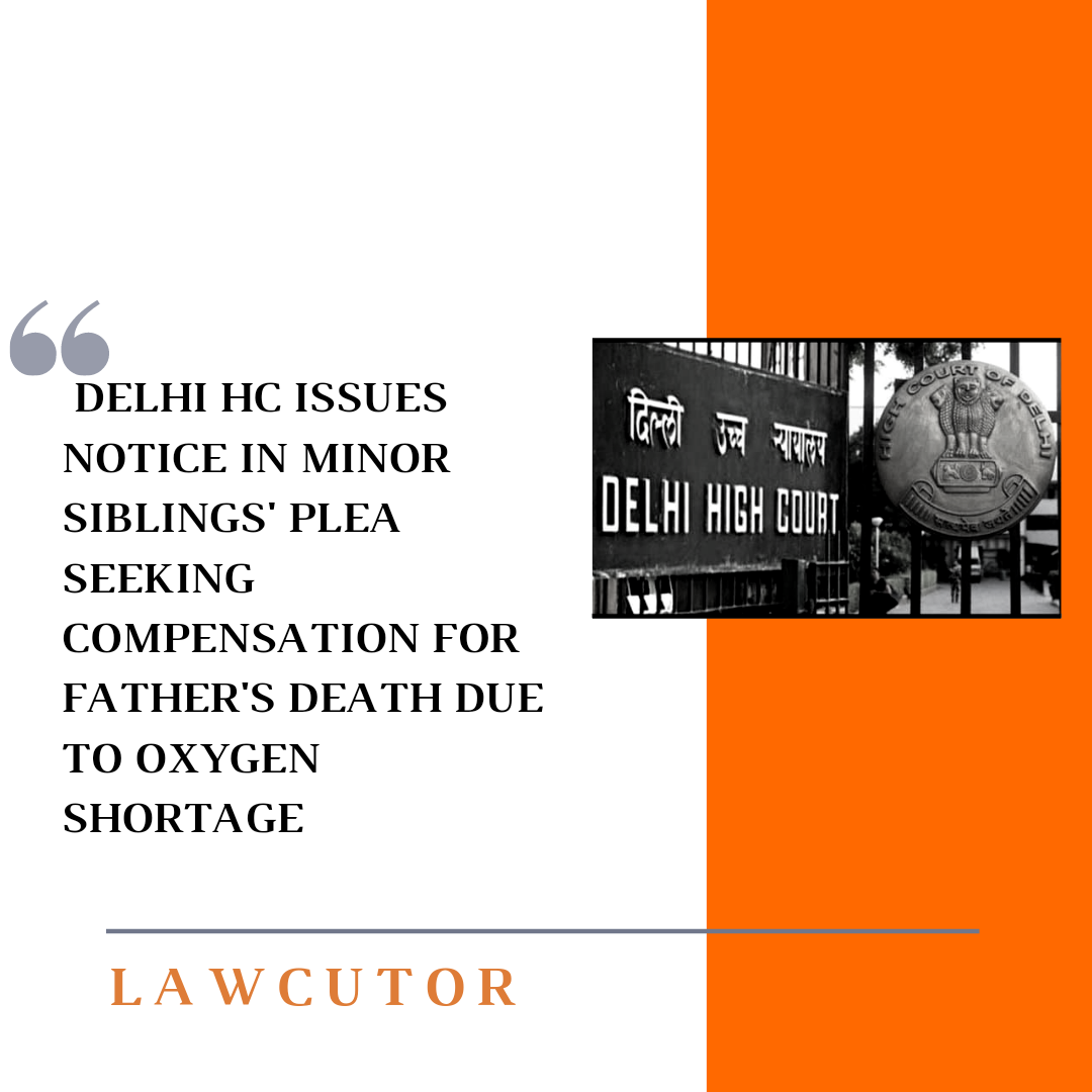 On Friday, the Delhi High Court issued a notice to the central and the Delhi government to seek compensation and welfare plans for families with minor children who lost their main breadwinner due to lack of oxygen during the second wave of COVID-19 [Yasmin Kataria & Anr. against Delhi And the NCT government of Ols.