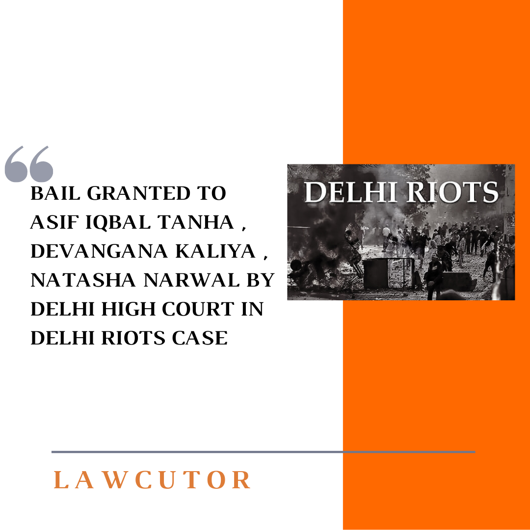 The Delhi High Court granted bail to Asif Iqbal Tanha , Devangana Kaliya and Natasha Narwal on 15 June 2021 in the case of Delhi Riots under Unlawful Activities.