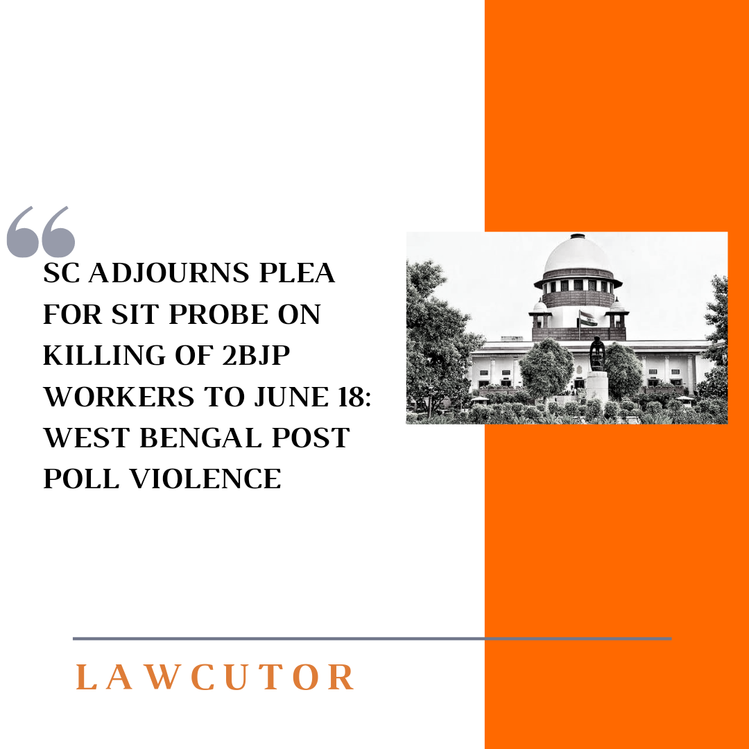 The Supreme Court on Tuesday adjourned to June 18th, the plea filed seeking CBI/SIT probe into the killings of two BJP activists allegedly at the instance of Trinamool Congress leaders during the post-poll violence.