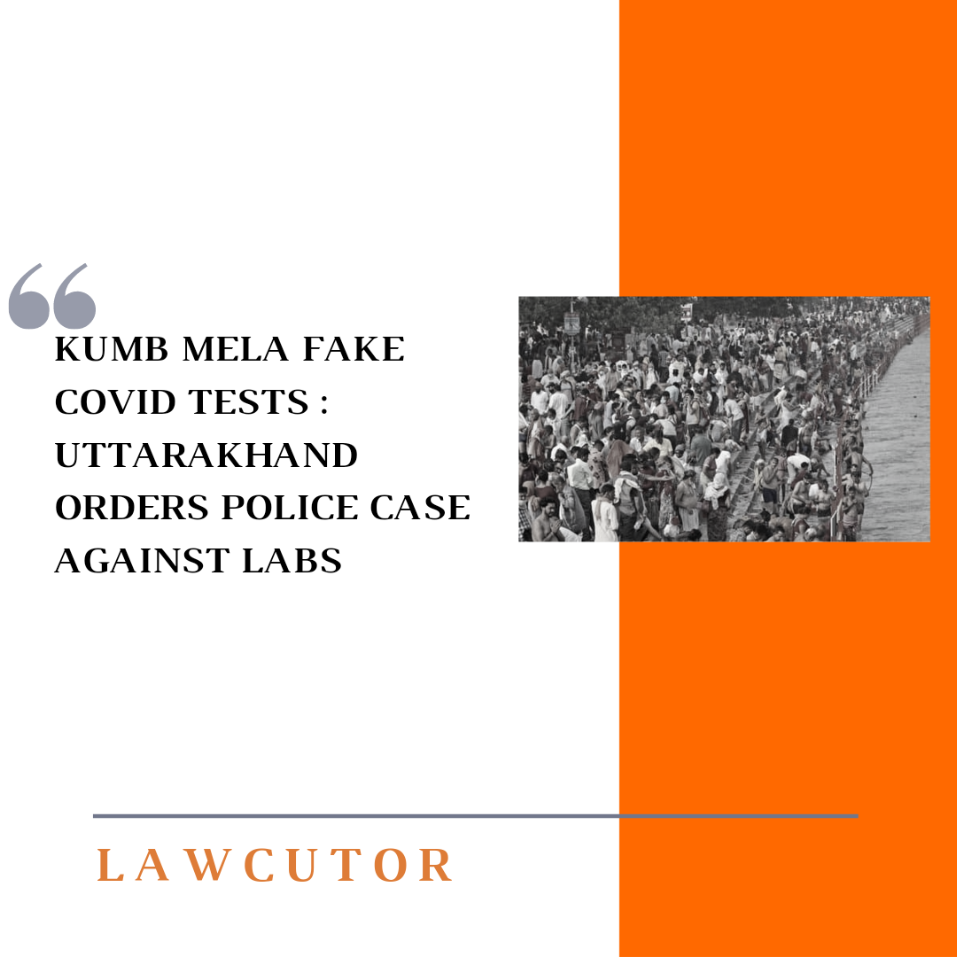 The Uttarakhand Government has directed the Haridwar District Administration ( DC) to register a case against private laboratories that they have allegedly conducted tests during the Kumb Mela . Hundreds of thousands of pilgrims gathered in the City of Haridwar for a ritual bath in ganga river between April 1 to 30.
