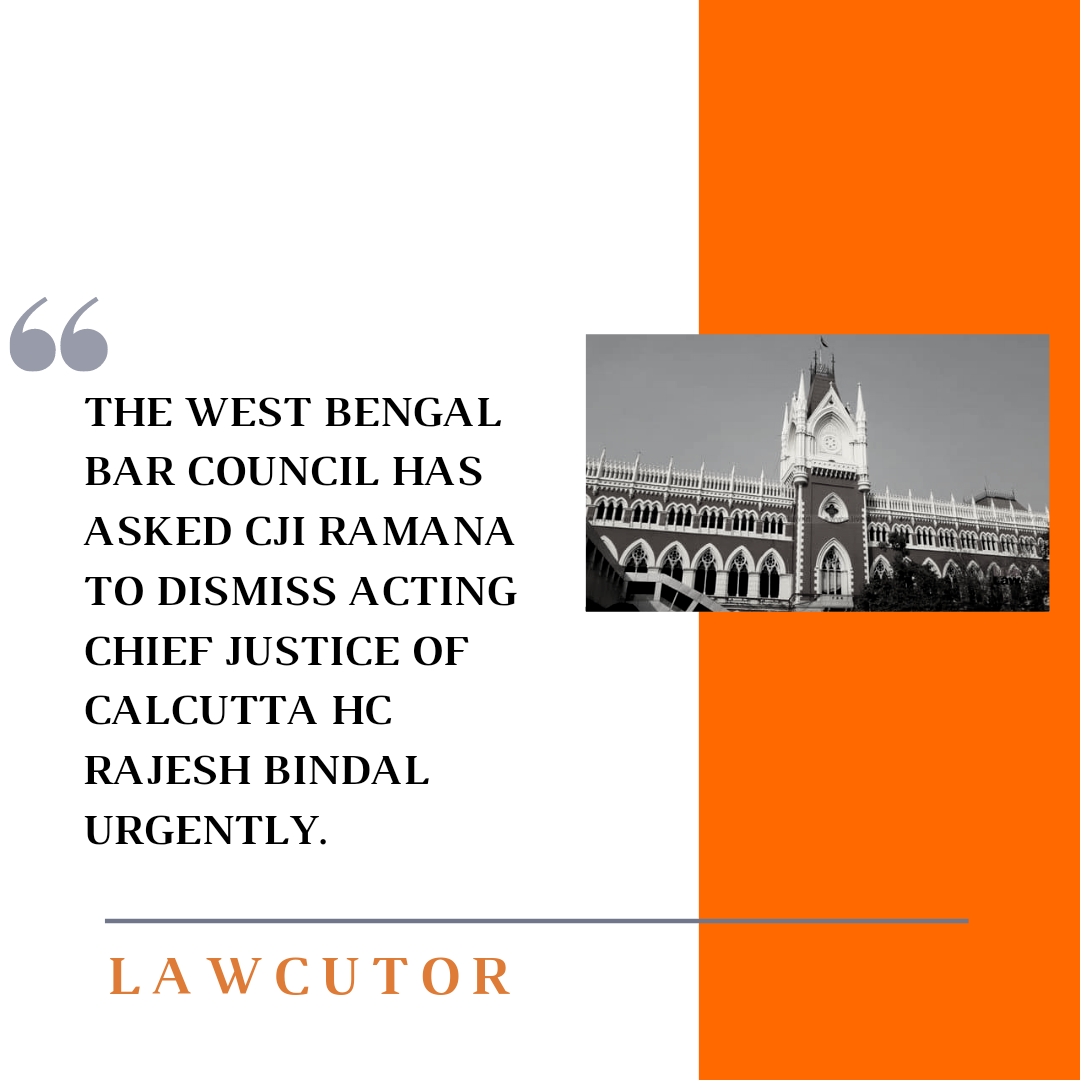 The West Bengal Bar Council has written a forceful letter to Chief Justice of India (CJI) N.V. Ramana, requesting that Temporary Chief Justice of the Calcutta High Court Rajesh Bindal be removed immediately.