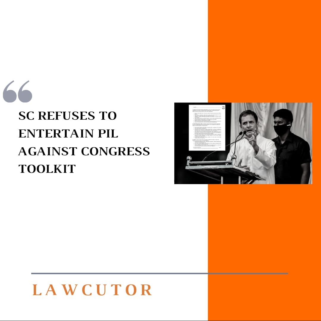 On Monday, the Supreme Court refused to entertain a PIL against the Congress toolkit which sought investigation by the National Investigation Agency and further a suspension of registration of Congress as a party if the charges against them of “anti-national acts” are found to be true.