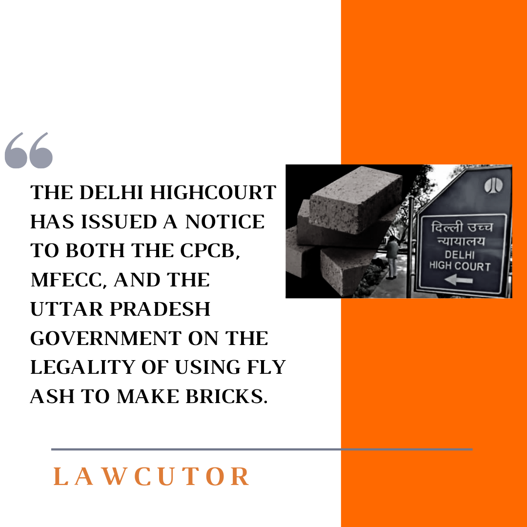 The Delhi High Court has issued a notice in a plea seeking compliance with a legislative mandate concerning the use of fly ash for brick manufacturing. On Friday, the Division Bench led by Chief Justice D.N. Patel and Justice Jyoti Singh sought comments on the subject from the Ministry of Environment, Forest and Climate Change, the Uttar Pradesh government, the Central Pollution Control Board, and other bodies.