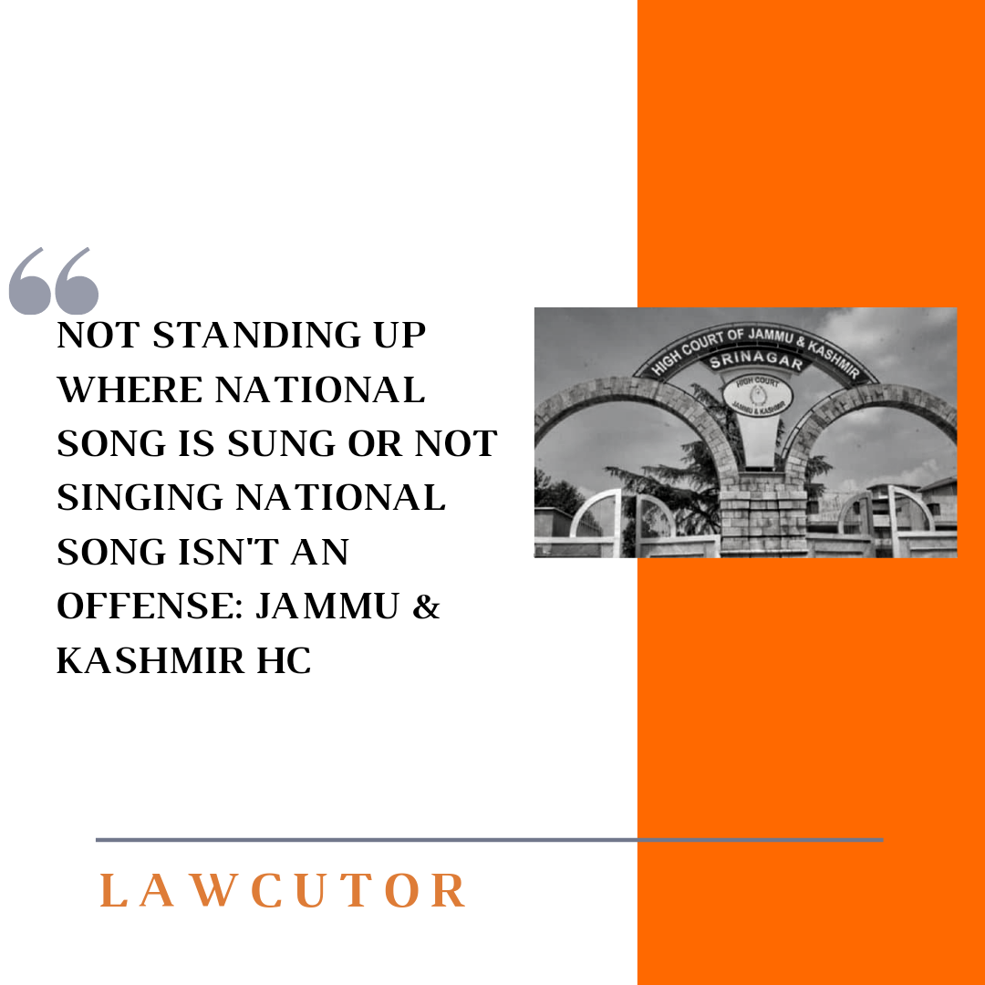 Insignificant disregard to Indian National Song of devotion isn’t an offense Avoidance of Offended to National Respect Act, 1971 (Act) unless the conduct of such individual sums to avoiding the singing of Indian National Song of devotion or causing unsettling influence to any gathering locked in such singing, held by the Jammu & Kashmir High Court.