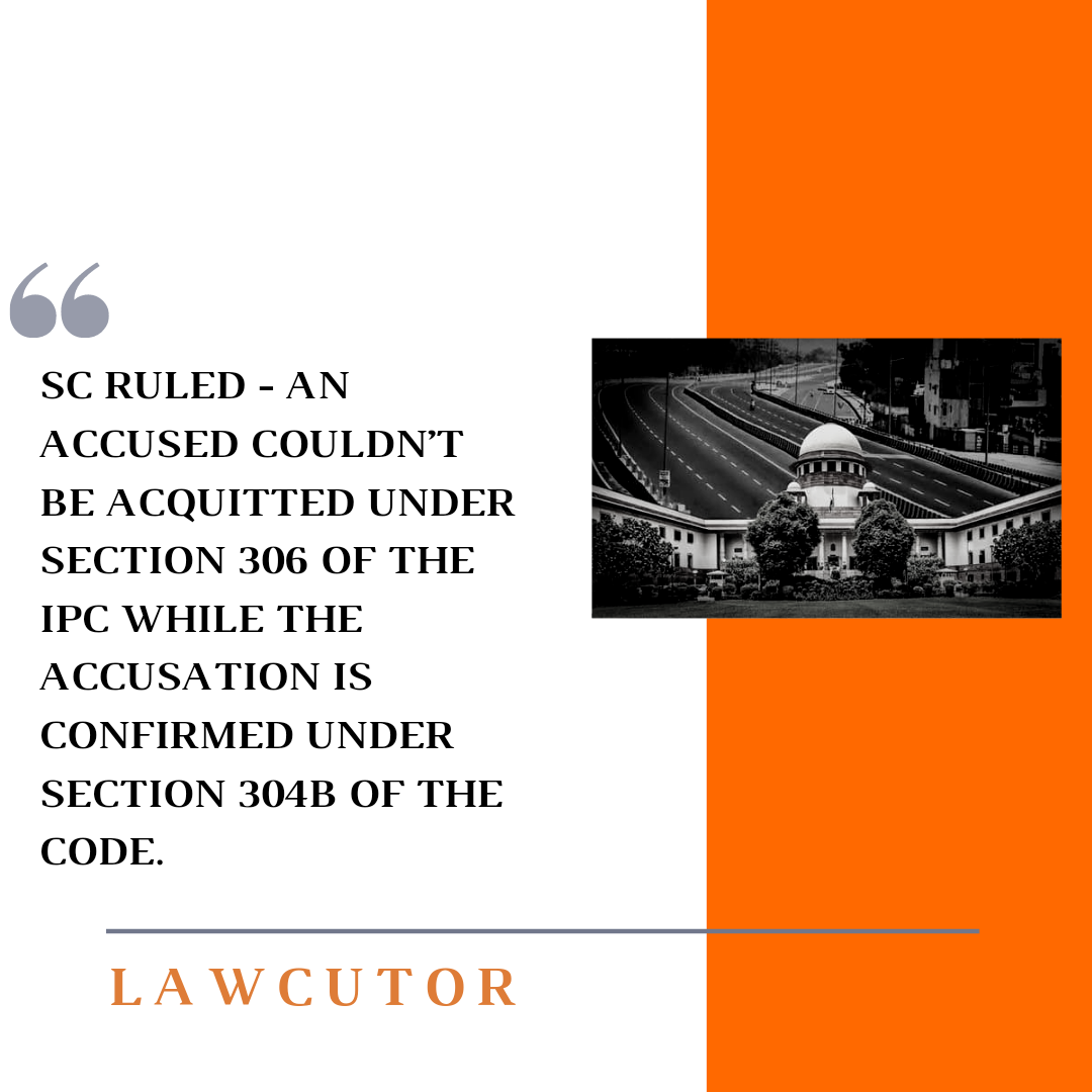 While confirming the accusation under Section 304B of the Indian Penal Code, the Supreme Court stated that an accused cannot be exonerated for an offence under Section 306 of the Indian Penal Code.