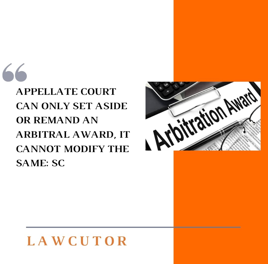 The Supreme Court on Tuesday while hearing a case of Section 34 of Arbitration Act, 1996 held that an award cannot be modified by the Appellate Court.