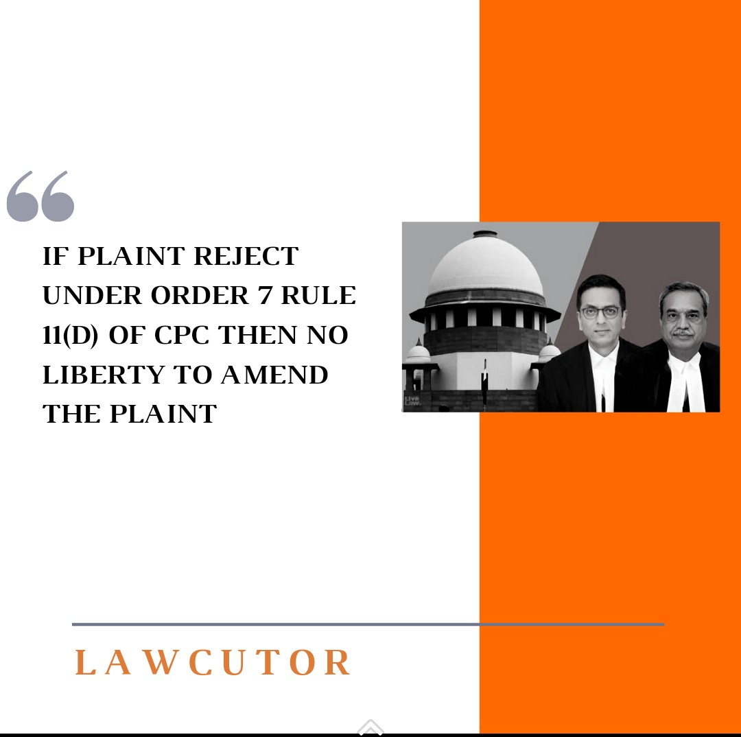The bench of Justice in the Supreme Court observed that reject a paint under order 7rule 11(d) of CPC, the court can’t grant liberty to the plaintiff to amend the plaint.