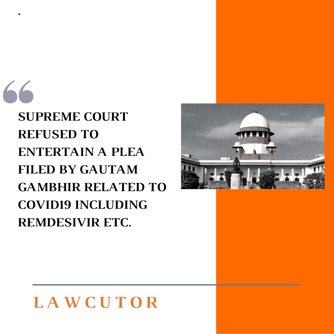 The Supreme Court has today refused to entertain a plea filed by Gautam Gambhir and his organization challenging the order of the Delhi High Court over the hoarding of Oxygen and medicines related to COVID19 including Remdesivir, Fabiflu, etc.