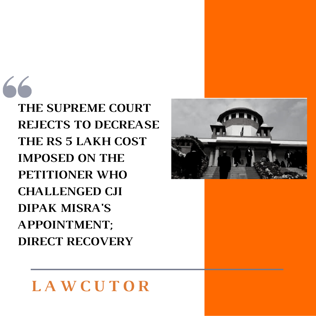 On Friday, the Supreme Court denied Mukesh Jain’s request for a reduction in the Rs 5 lakh cost imposed on him for filing a writ petition challenging Dipak Misra’s nomination as Chief Justice of India.