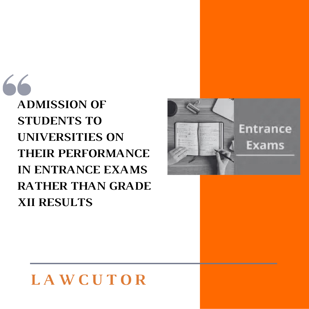 The petition ment that to admit students to Universities solely based on their performance in entrance exams rather than Grade XII results. Petitioners are Grade XII students aggrieved by the method of admission given.
