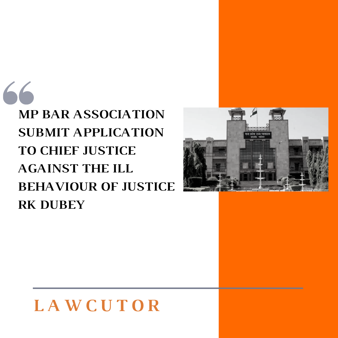 Bar Association of Madhya Pradesh High Court wrote an application to Chief justice Mohammad Rafiq regarding the misbehavior of Justice R K Dubey. The application outlined the issue of ill treatment and misbehaviour of the learned judge towards the advocates.