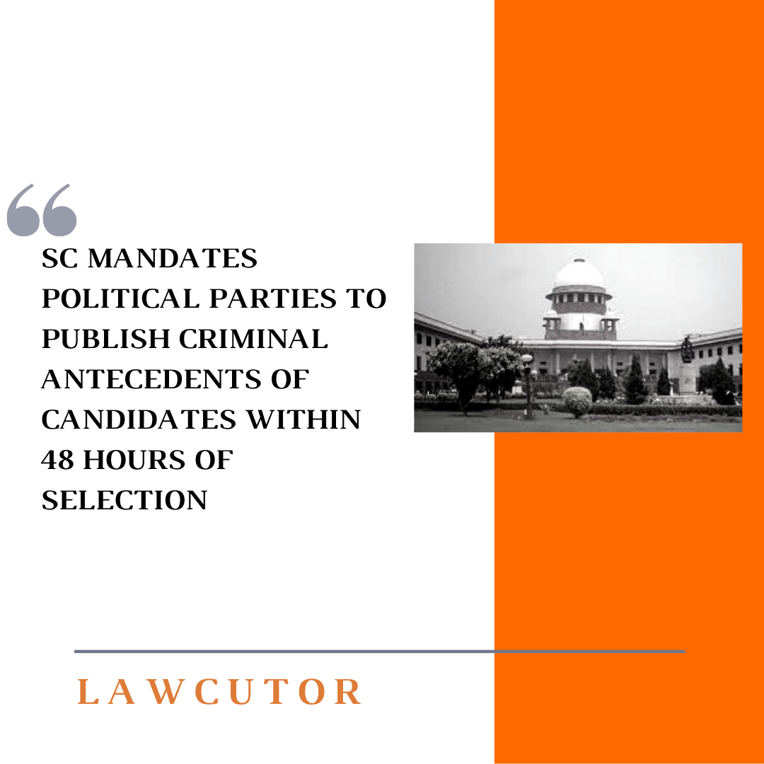 The Bench stated that the political parties, both regional and national parties are to publish the criminal antecedents on their websites, in newspapers and on their official social media platforms such as Facebook and Twitter.