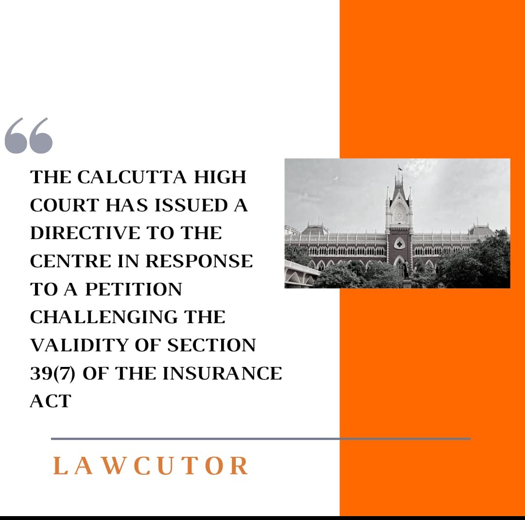 On a plea challenging the constitutionality of Section 39(7) of the Insurance Act, the Calcutta High Court issued a notification to the Central govt.