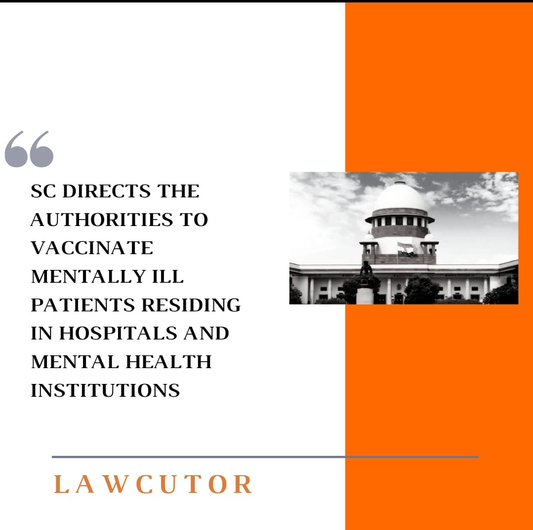 On Wednesday a direction was issued by the Supreme Court of India to vaccinate the mental health patients residing in the mental healthcare institutions and hospital in a timely manner. A report is to be at Union Ministry of Social Justice and Empowerment on or before October 15, 2021 regarding the progress of the vaccination drive.