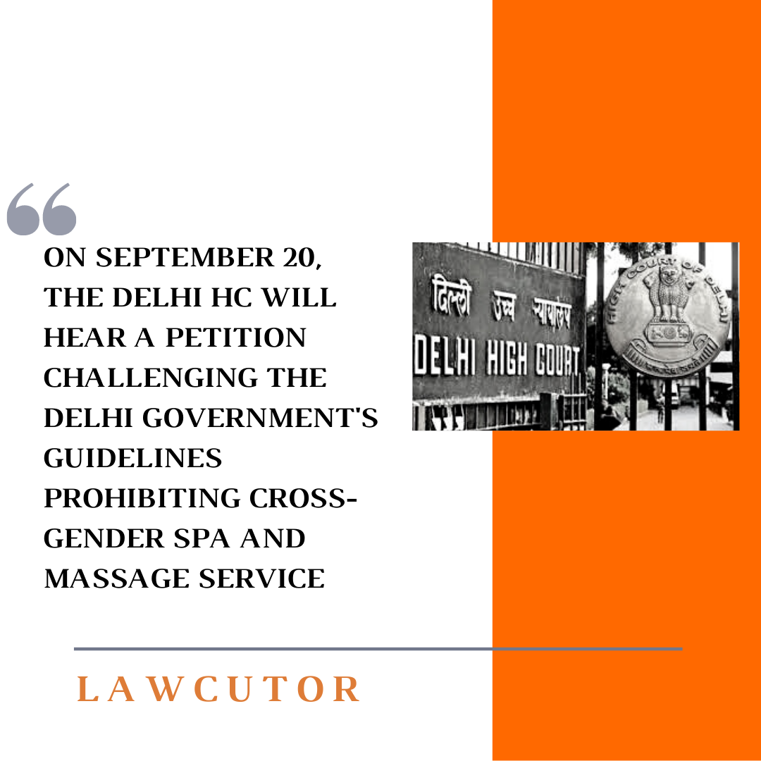 The Delhi High Court will hear on September 20 a supplication testing rules gave by the Delhi Government forbidding cross sex spa and back rub administrations in the public capital.