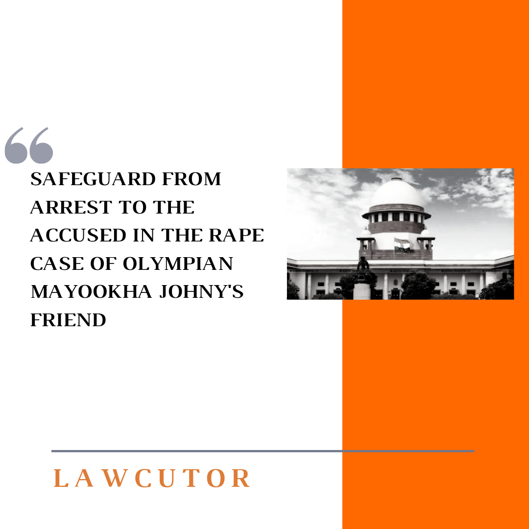 On Thursday, the Apex Court has granted safeguard to the man accused of rape from being arrested. The accused named C.C Johnson is accused of raping and capturing nude pictures of Olympian Mayookha Johny’s friend.