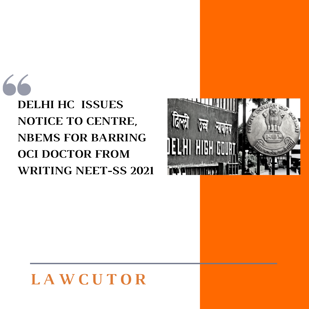 The Delhi HC has issued notice to the Centre and the National Board of Examinations in Medical Sciences over a petition filed by OCI cardholder doctor, who was declared ineligible by the Central government to take up the National Eligibility-cum-Entrance Test-SS 2021 examination.