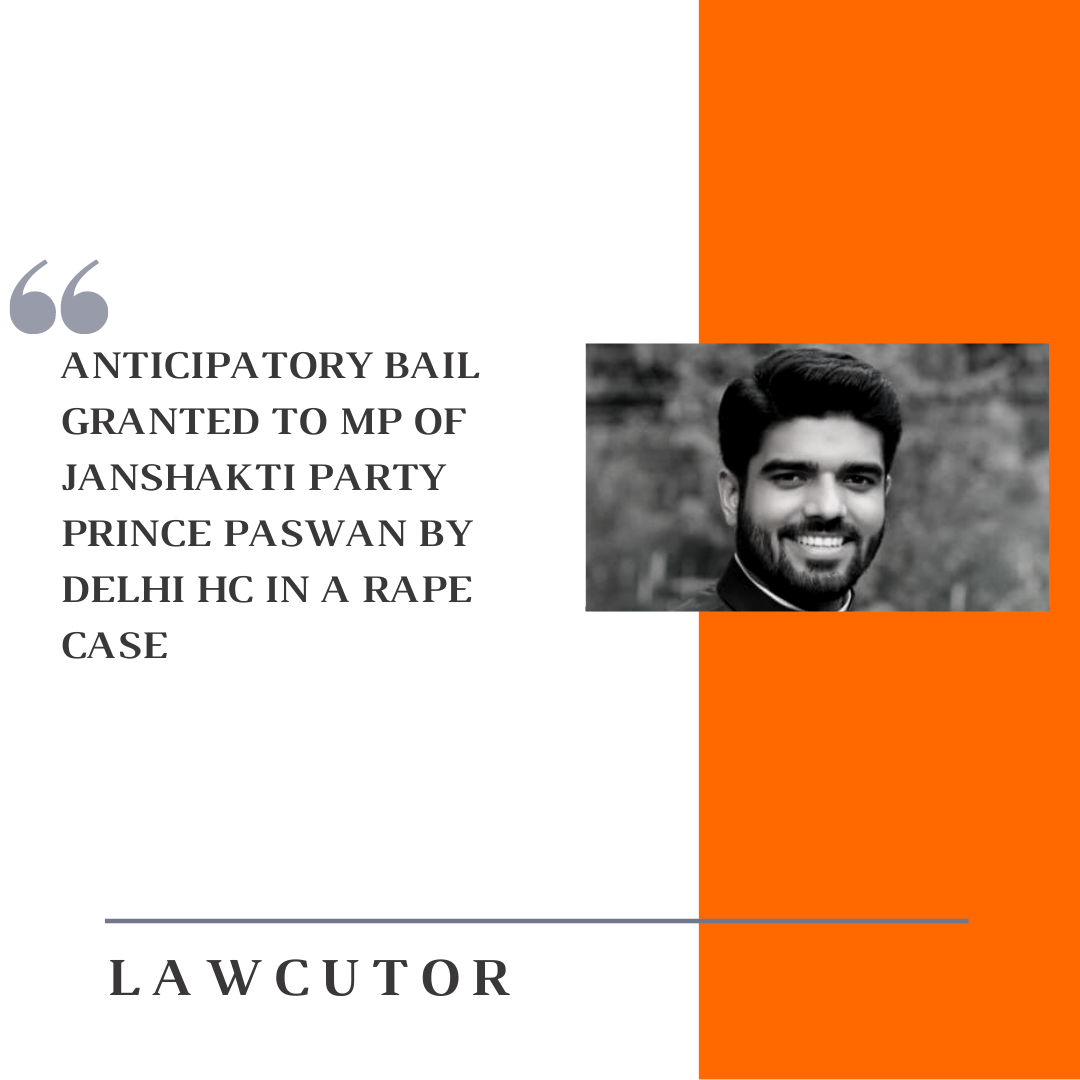 On, Saturday the Delhi High Court granted anticipatory bail to Prince Paswan, MP of the Janshakti Party.