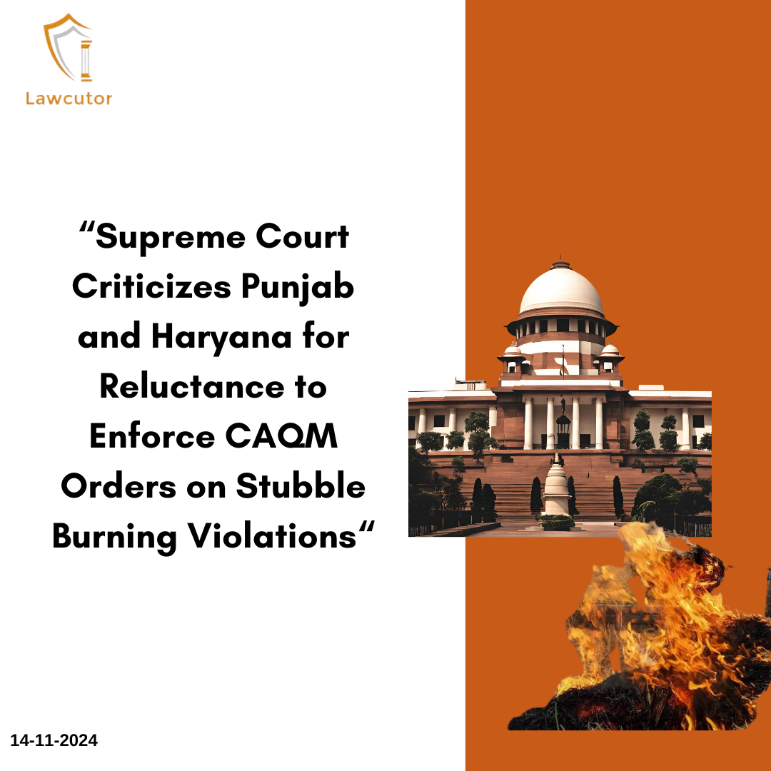 On Monday, November 11, the Supreme Court expressed concern over the hesitancy of Punjab and Haryana to prosecute officials for violations of the Commission for Air Quality Management (CAQM) orders related to stubble burning, under Section 14 of the CAQM Act. This issue came up during a hearing in the landmark MC Mehta v. Union of India case, which addresses various pollution control measures in Delhi-NCR, including vehicular emissions, solid waste management, and stubble burning.