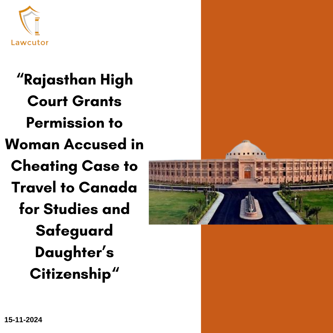 The Rajasthan High Court allowed a petition filed by a woman accused under Section 420 IPC, permitting her to retrieve her passport and travel to Canada. The petitioner sought permission to complete her studies and to prevent the revocation of her daughter’s Canadian citizenship, which required her to reside in Canada for at least 180 days.