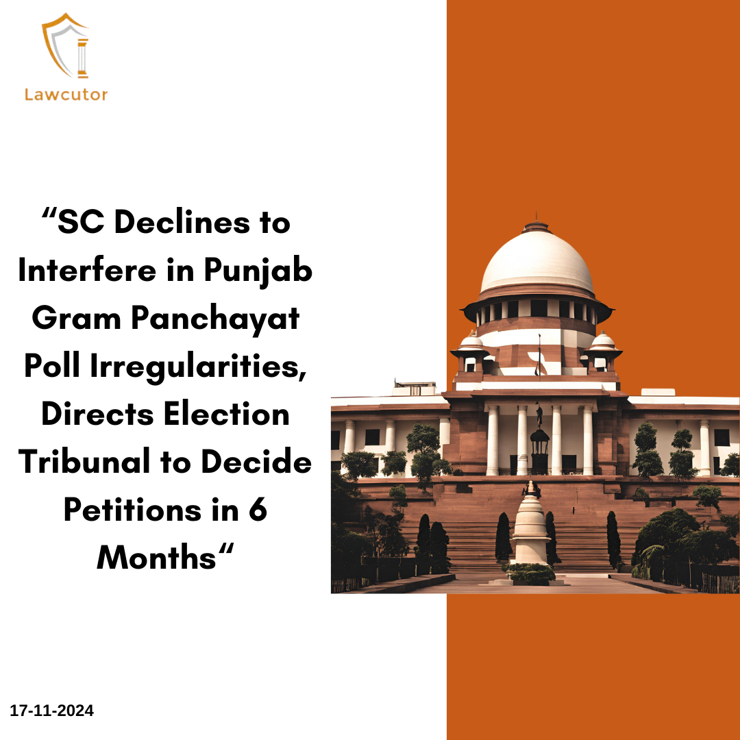 The Supreme Court today (November 18), while refusing to interfere in pleas alleging irregularities in Punjab Gram Panchayat elections, directed the Election Tribunal to decide upon the election petitions within six months. The Court also allowed petitioners whose nominations were rejected to file a review petition before the High Court to challenge the elections.