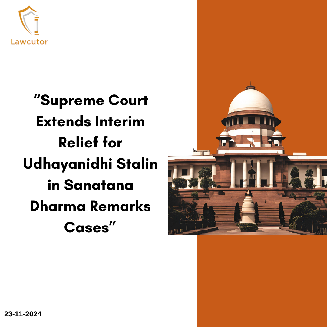 The Supreme Court on November 22, 2024, extended its interim order exempting Tamil Nadu Deputy Chief Minister Udhayanidhi Stalin from physically appearing in lower courts handling criminal cases filed against him over his controversial remarks on “Sanatana Dharma.”