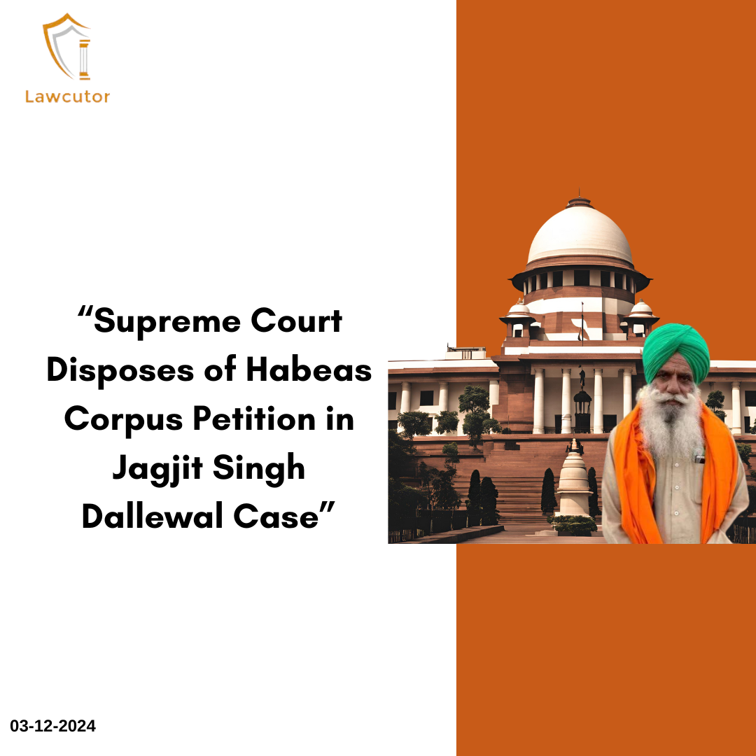 On December 2, 2024, the Supreme Court disposed of a habeas corpus petition filed on behalf of farmer leader Jagjit Singh Dallewal, who had been allegedly detained illegally by the Punjab Police. The petition raised concerns about Dallewal’s detention before he was set to begin a fast-unto-death on November 26, 2024, in support of the farmers’ protest. The petitioners alleged that Dallewal was forcibly removed from the protest site at the Khanuari border and taken to a hospital in Ludhiana, from which he was later released.