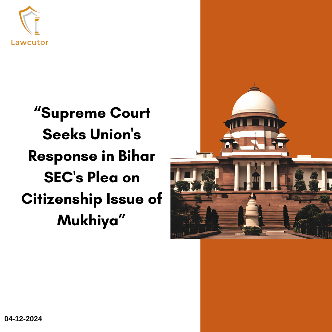 The Supreme Court recently issued a notice to the Union of India in a case challenging the Bihar State Election Commission’s (SEC) directive that referred the citizenship dispute of a Mukhiya, Biltu Ray, to the Central Government. A bench of Justices Surya Kant and Ujjal Bhuyan passed the order in response to the Bihar SEC’s plea, which contended that the citizenship matter should not delay the disqualification of the Mukhiya, whose eligibility was questioned on the grounds of alleged Nepali citizenship.