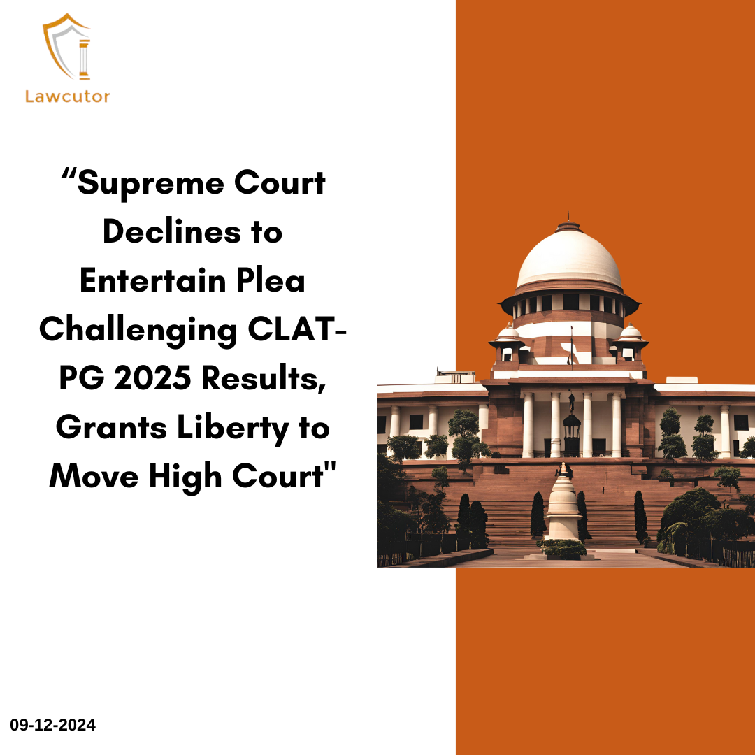 On December 9, 2024, the Supreme Court declined to entertain a plea challenging the provisional results of the Common Law Admission Test (CLAT-PG) 2025, directing the petitioners to approach the High Court for appropriate remedies. The bench, comprising Chief Justice of India Sanjiv Khanna and Justice Sanjay Kumar, dismissed the petition, reiterating that the Supreme Court cannot act as the “court of first instance” in such matters.