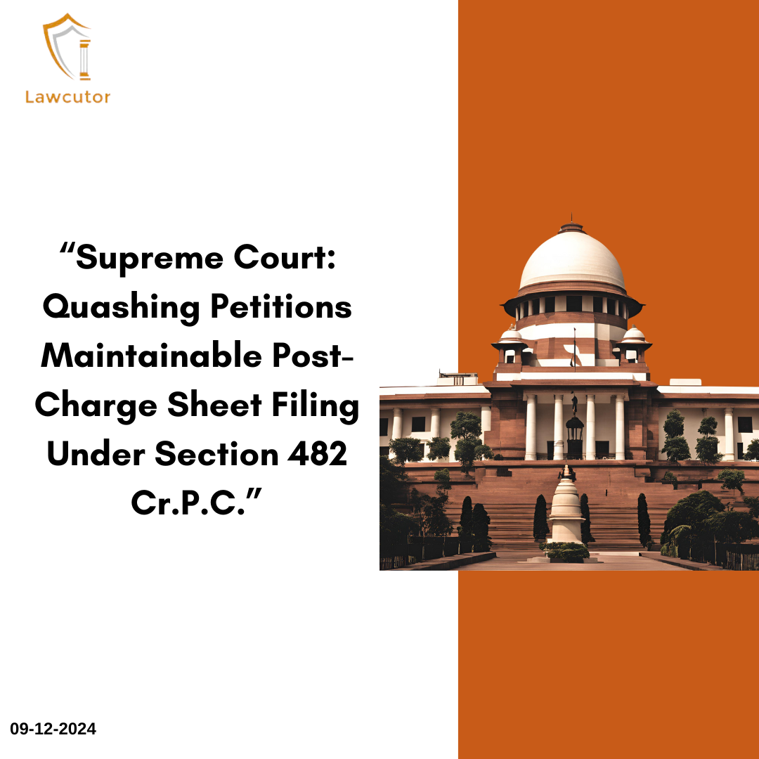 The Supreme Court, in the case of Mukesh & Ors. vs. State of Uttar Pradesh & Ors., reiterated that an accused can invoke Section 482 of the Criminal Procedure Code (Cr.P.C.) to quash criminal proceedings even after a charge sheet has been filed. The Court rejected the contention that the accused must wait until charges are framed to challenge the order of framing charges through a revision application.
