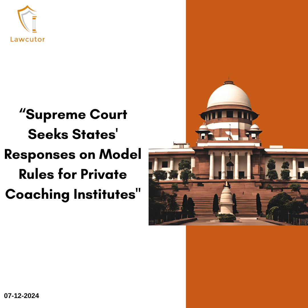 In a suo motu case concerning the safety and regulation of private coaching centres, initiated after a tragic flooding incident in Delhi’s Old Rajinder Nagar that claimed the lives of three students, the Supreme Court has sought responses from states and Union Territories regarding the proposed Model Rules on Infrastructure, Safety, and Regulation of Private Coaching Institutes, 2024.