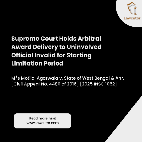 The Supreme Court ruled that delivering an arbitral award to a government official not involved in or aware of the arbitration proceedings does not trigger the limitation period for challenging the award under the Arbitration and Conciliation Act, 1996. Justices JB Pardiwala and KV Viswanathan, citing Union of India v. Tecco Trichy Engineers & Contractors (2005) 4 SCC 239, emphasized that service must be to a person with knowledge of the case, best suited to evaluate the award and decide on further action, stating: āThis Court has held that the award should be received in the context of huge organisations by the person who has knowledge of the proceedings and who would be the best person to understand and appreciate the arbitral award as also to take a decision in the matter of moving appropriate applications.ā