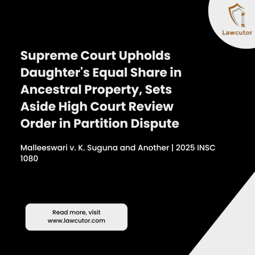 The Supreme Court, in a landmark ruling (2025 INSC 1080), allowed the appeal of Malleeswari, daughter of the late Munusamy Naidu, affirming her right to a 1/3rd share in ancestral properties under the Hindu Succession (Amendment) Act, 2005 (HSA 2005) and the Tamil Nadu Amendment Act, 1989. Justices S.V.N. Bhatti and Ahsanuddin Amanullah set aside the Madras High Court’s review order, restoring its earlier Civil Revision Petition (CRP) decision dated September 23, 2022, which had granted Malleeswari’s plea to amend a preliminary partition decree. The court emphasized the limited scope of review jurisdiction under Section 114 and Order 47 Rule 1 of the CPC, criticizing the High Court for exceeding it by reappreciating evidence as if in appellate proceedings.