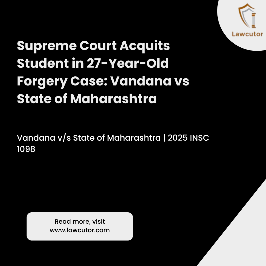 In a significant ruling, the Supreme Court of India has acquitted Vandana, a former student accused of forging her marksheet and revaluation notification to secure admission to BSW Part-III at Nagpur University in 1998. The bench, comprising Justices Aravind Kumar and Sandeep Mehta, set aside her conviction under Sections 420 read with 511, 468, and 471 of the IPC, citing insufficient evidence to prove authorship of the alleged forgery.