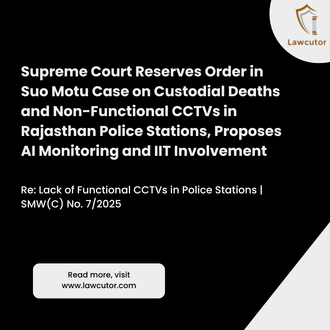 On September 15, 2025, the Supreme Court reserved its orders in a suo motu case initiated on September 4, 2025, addressing the alarming issue of custodial deaths and the lack of functional CCTV cameras in police stations across Rajasthan, following a disturbing report in the Dainik Bhaskar newspaper. The bench, comprising Justices Vikram Nath and Sandeep Mehta, expressed serious concerns over compliance with its earlier directives from the 2020 judgment in Paramvir Singh Saini v. Baljit Singh, which mandated the installation of CCTV cameras in all police stations, including entry/exit points, lock-ups, corridors, lobbies, and reception areas, with footage retention for at least 18 months to prevent custodial violence. The court noted that despite these orders, implementation remains patchy, with many cameras either not installed, defunct, or manually switched off by officials, exacerbating risks of custodial deaths, torture, and abuse. Senior Advocate Siddharth Dave, assisting the court, informed that while some states have partially complied, others, including central agencies like the Enforcement Directorate (ED), National Investigation Agency (NIA), and Central Bureau of Investigation (CBI), have failed to adhere fully, highlighting the need for robust monitoring beyond mere affidavits of compliance.