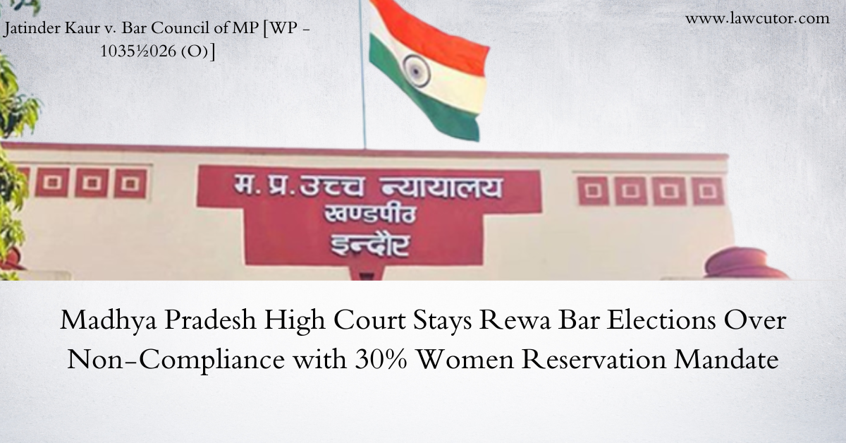 The Madhya Pradesh High Court on Tuesday passed an interim order restraining the District Bar Association Rewa from conducting its scheduled elections until further orders, citing non-compliance with the Supreme Court’s binding directions mandating 30% reservation for women as office bearers and executive members in bar associations. A division bench comprising Chief Justice Sanjeev Sachdeva and Justice Vinay Saraf issued the order in a petition filed by a woman advocate challenging the election notification dated 7 March 2026 issued by the District Advocates’ Association, Rewa. The polling for the elections was scheduled for 25 March 2026.