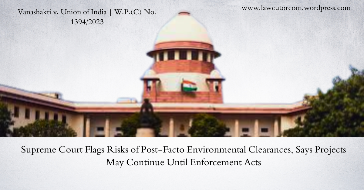 The Supreme Court on Wednesday expressed deep concern that permitting post-facto environmental clearance would result in projects harmful to the environment continuing unabated until state intervention occurs. A bench comprising Chief Justice of India Surya Kant, Justice Joymalya Bagchi and Justice Vipul Pancholi was hearing a batch of writ petitions challenging the Office Memorandum that provides a framework for post-facto environmental approvals. The matter arises from the Court’s earlier decision recalling its own order that had prohibited retrospective environmental clearances.