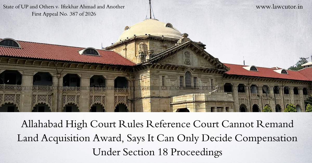 The Allahabad High Court has held that the Reference Court under the Land Acquisition Act, 1894, acting as an original court for determining compensation, is not empowered to set aside the award passed by the Collector and remand the matter back to the Collector for a fresh determination of compensation. Justice Sandeep Jain observed that the Land Acquisition Act, 1894, is a complete code in itself and provides a specific mechanism for the land owner who is dissatisfied with the compensation awarded by the Collector to seek a reference under Section 18, whereupon the Reference Court determines the compensation in accordance with law. The Act does not vest any power in the Reference Court to set aside the Collector’s award and remand the matter for a fresh decision. The Court clarified that the power of remand is exercised only by an appellate court, whereas the Reference Court functions as a court of original jurisdiction and is denuded of any appellate powers, including the power to remand.