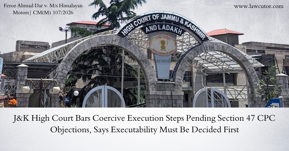 The Jammu & Kashmir and Ladakh High Court has held that an Executing Court cannot proceed with coercive steps such as issuance of levy warrants in execution proceedings while an application under Section 47 of the Code of Civil Procedure, 1908, questioning the executability or jurisdiction of the decree, remains pending and undecided. Justice Wasim Sadiq Nargal observed that Section 47 CPC mandates that all questions arising between the parties relating to the execution, discharge or satisfaction of the decree shall be determined by the Executing Court itself and not by a separate suit, and that when a decree is challenged under this provision, such challenge strikes at the very root of the decree and its execution. The Executing Court is therefore under a mandatory duty to adjudicate upon such objections before proceeding further in the matter, and it is not permissible that an application under Section 47 CPC pending consideration is brushed aside and execution is carried forward, as any such course would render the remedy under Section 47 CPC illusory.