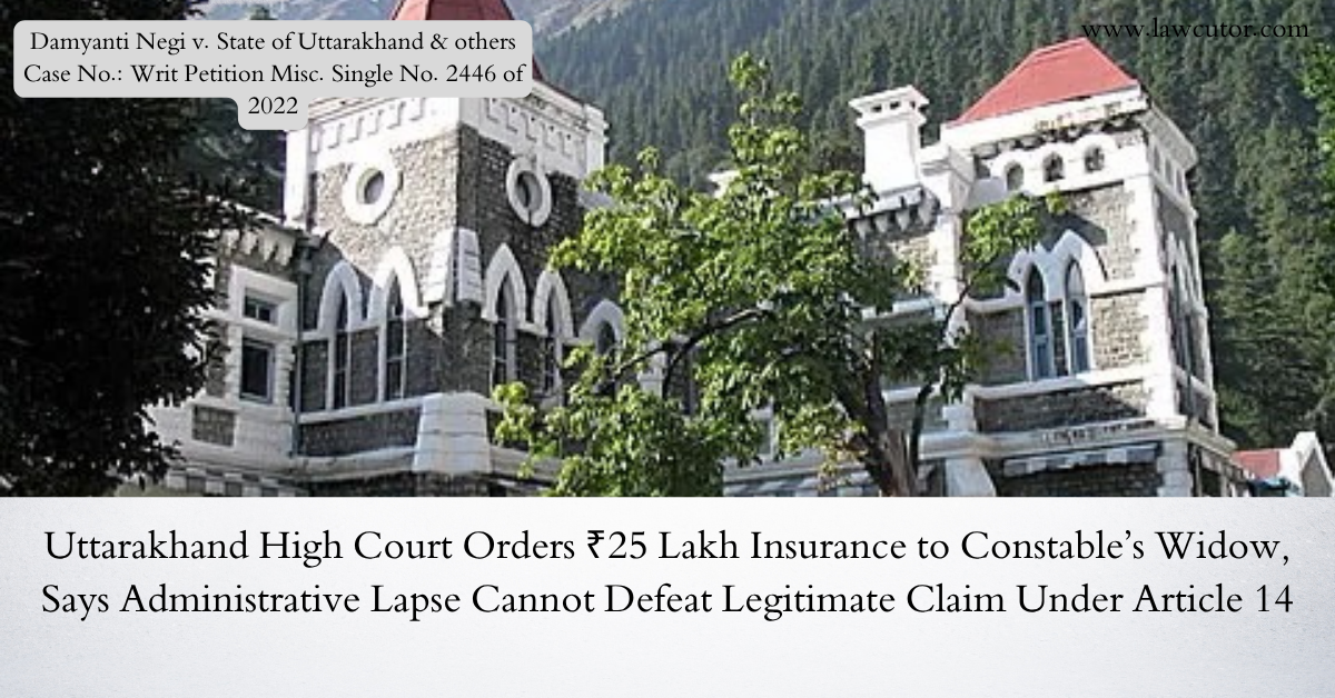 The Uttarakhand High Court has held that a bank cannot deny the benefit of a “Complimentary Police Accidental Death Insurance Cover” scheme to the widow of a deceased police constable merely on the technical ground that the name of the deceased was not included in the list of covered employees, particularly when such omission is an administrative lapse arising out of lack of coordination between the bank and the police department. Justice Pankaj Purohit observed that the petitioner cannot be made to suffer for lapses attributable to the respondents themselves and that the bank cannot take advantage of its own omission. The Court found the denial of benefit to be wholly arbitrary, illegal and violative of Articles 14, 16 and 21 of the Constitution of India.