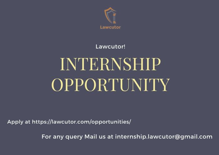 Lawcutor is inviting applications for a one month internship. The interns are expected to work from home. The main domain is divided into categories of Criminal Law, Civil Law, Constitutional Law and Intellectual Property Law. Interns shall be assigned with Research work, updating National and International news, writing articles on the given topics. Interns will be allotted with the topics one at a time; they are expected to follow the deadline.